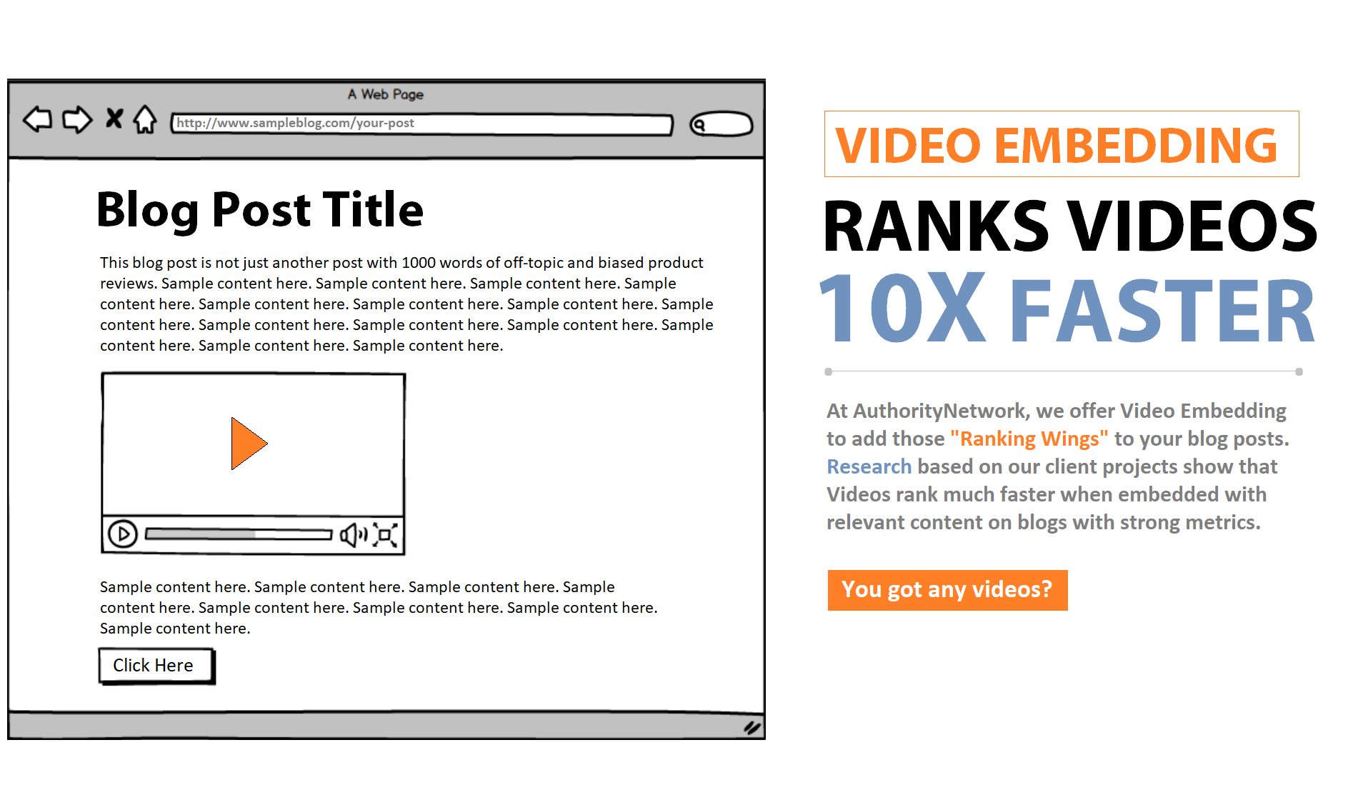 There's no better Video Ranking strategy other than Embedding Videos within High Authority Blog Posts. It's the most legitimate and white-hat way of search engine marketing for videos. |